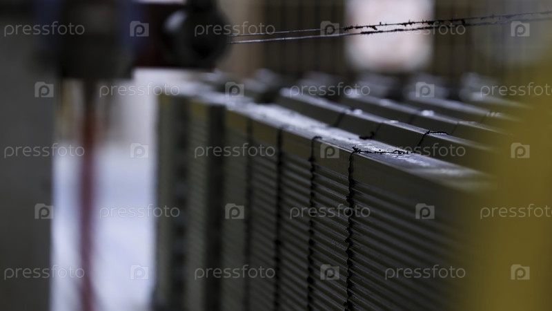 Промышленный фон с сырыми керамическими блоками, нарезанными пилой. изделия из кирпича и блоков, конвейерная лента с сырыми керамическими блоками на заводе