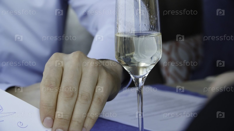 Бизнесмены подписывают контракт в ресторане с бокалом шампанского на столе