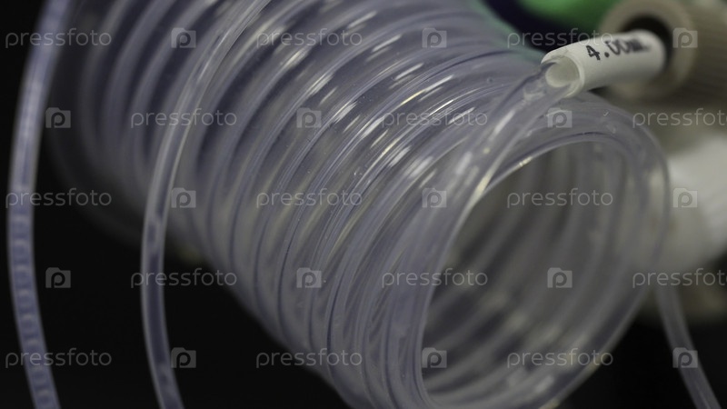 Жидкость протекает через прозрачную трубу. специальное оборудование в лаборатории для транспортировки жидкости. Медицинское переливное оборудование. Жидкость течет по трубке. Переливание крови закрыто