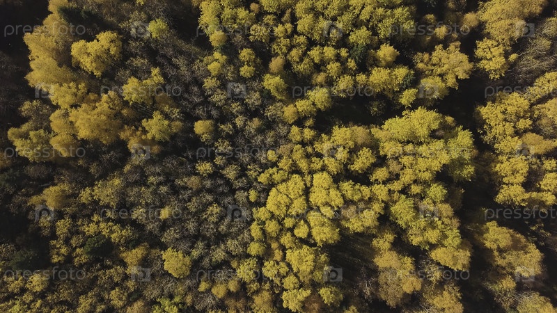 Вид с высоты удивительного городского парка в октябре осенние цвета, желтые и оранжевые вершины деревьев