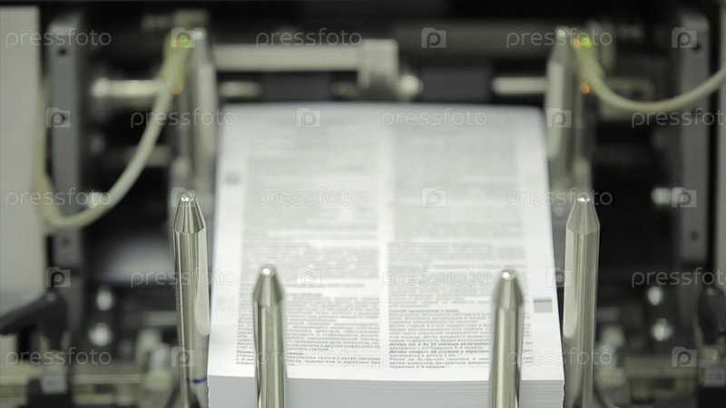 Машины, работающие в полиграфии, типографской промышленности - оборудование для уборки, фронтальный вид. Специальное оборудование для сортировки страниц. Типография является финишной линией. Линейная машина послепечатного отделения: резка, обрезка, покрыт