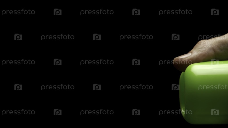 Разбрызгиваемый освежитель воздуха в руке изолирован на черном. Автоматический освежитель воздуха, изолированный против чёрного фона. спреи свежего воздуха перед темным фоном