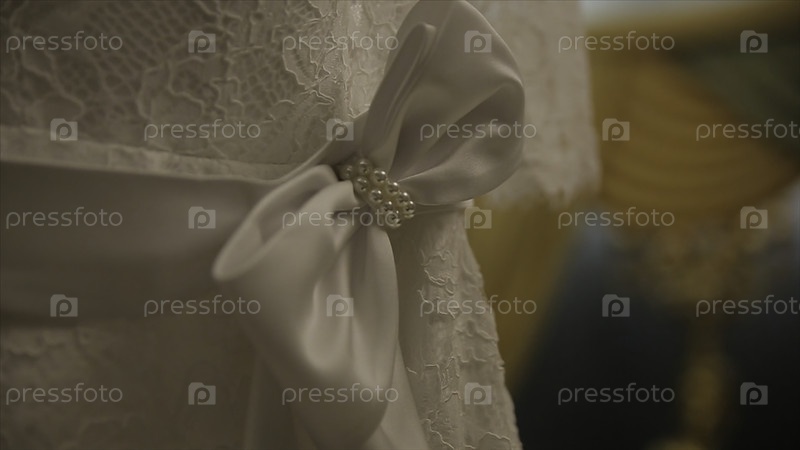Белое свадебное платье на плечах перед церемонией. Свадебное платье закрывается. Красивый свадебный красочный букет и одежда для невесты. Красота цветных цветов. Много клумбы. Свадебные аксессуары. Женское украшение для девушки. Детали