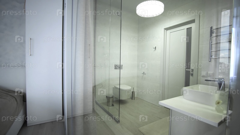 Интерьер современной ванной комнаты с душем