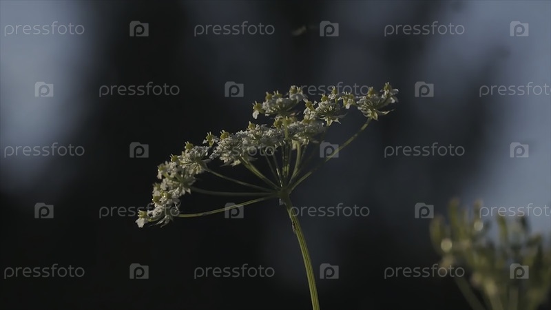 Насекомые летают вокруг травы и цветов летнего поля, естественного сельского ландшафта
