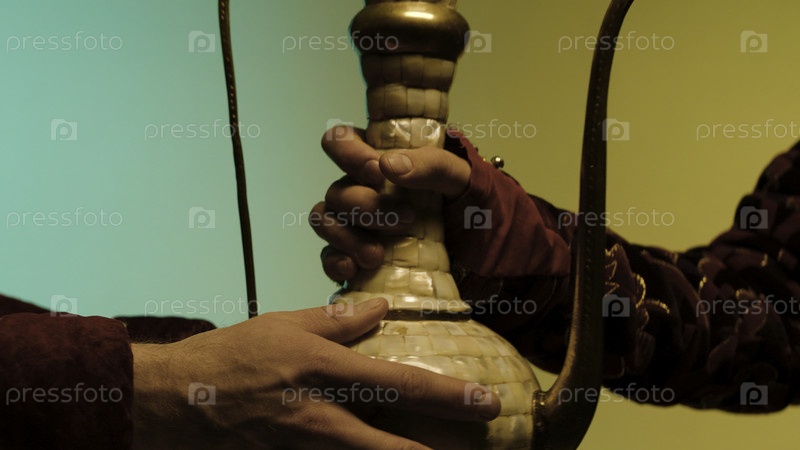 Процесс передачи восточной, древней керамической чайной или винной кружки