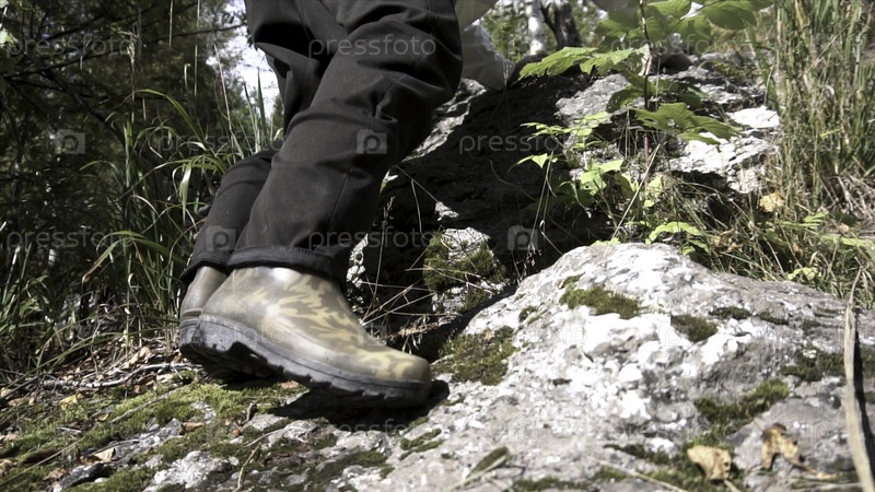 Человек делает шаги, чтобы подняться на гору в солнечный день