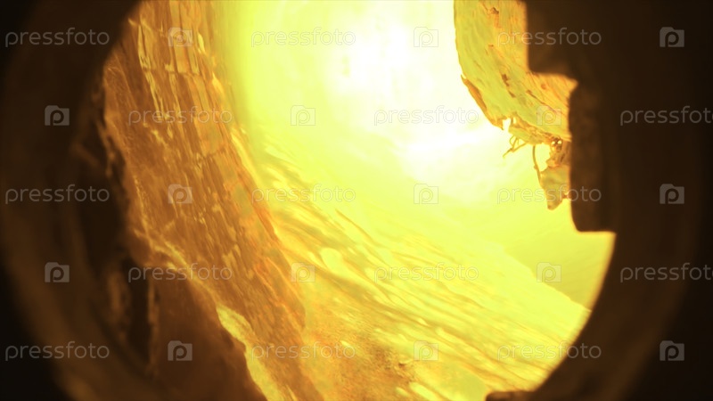 Вид внутрь высокой печи в процессе плавки металлов, концепция тяжелой промышленности. резервные кадры. Металлургическое производство, горячая мастерская на заводе, машиностроение