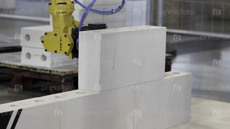 Промышленный робот на работе. СМИ. Робот кирпичника для автоматизированного строительства зданий, концепция роботизированных технологий в строительной отрасли