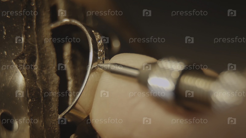 Ювелир устанавливает драгоценный камень. Производство ювелирных изделий. Ремонт кольца. Положить бриллиант на кольцо. Видео Макро. Профессиональное ремесло ювелира с помощью профессиональных инструментов. Поставить алмаз на кольцо. Макрофотография