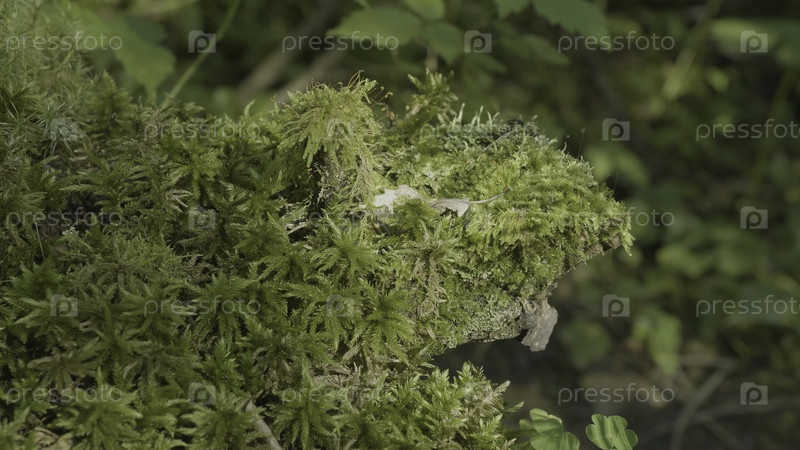 Красивый зеленый мох на солнце. Мох растет на дереве, красивый фоне моха. Листья на мохе, осень, лес, природа, дикая жизнь