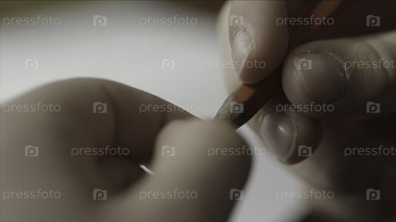 Человек нервно скручивает карандаш в руке. Закрой руку карандашом. Пальцы держат макрокарту для карандаша. Рука мужчины держит карандаш, чтобы написать на бумаге