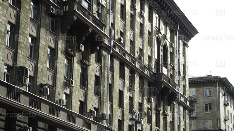 Старое историческое здание в центре города, вид из машины