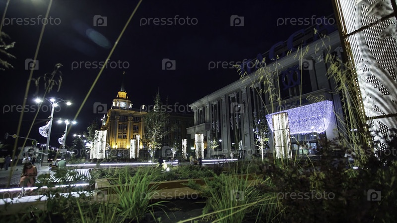 Екатеринбург, Россия - июль 2017: Екатеринбургская площадь. 1905 Квадрат ночью. Городское спокойствие в городе ночью