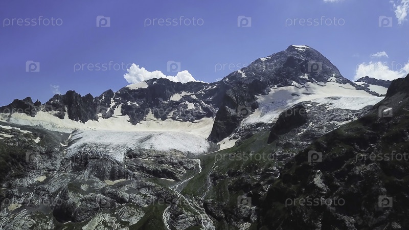 Красивые заснеженные горы на фоне синего неба