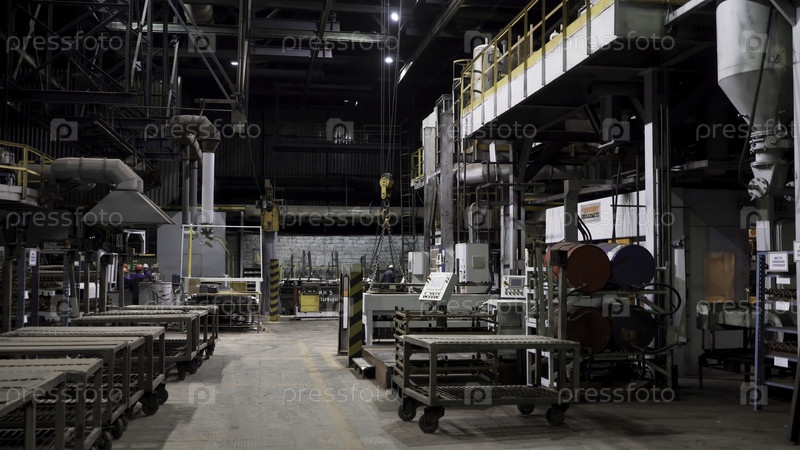 Промышленный опыт, мастерская с различным профессиональным оборудованием, мужские рабочие и промышленные машины. Сцена. Концепция строительства и инженерии
