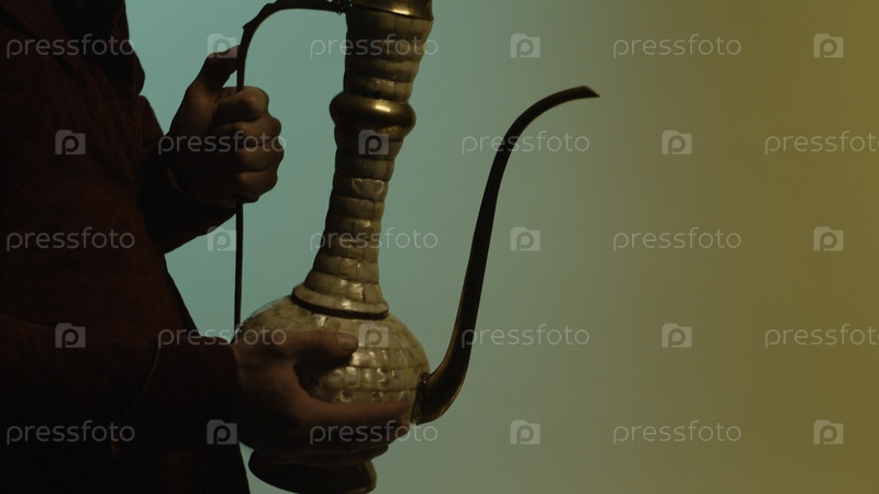 Процесс передачи восточной, древней керамической чайной или винной кружки