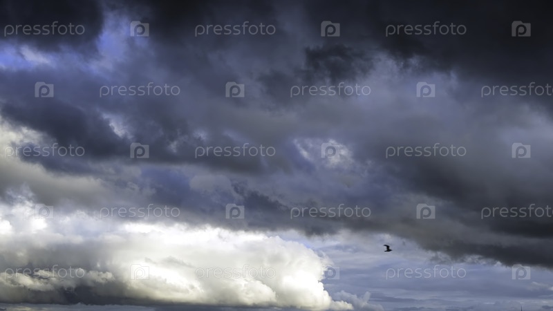 Концепция.Ниже вы можете увидеть тяжелые, красивые облака, текущие в голубом небе перед штормом или дождем