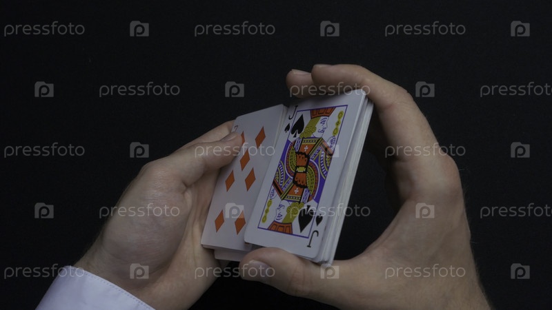 Играть в покер - это перемешивать карты. Руки мужчины смешивают карты. Закрывайте его. Руки мужчины смешивают игровые карточки. руки дилера смешивают карты во время игры в 4K-покер