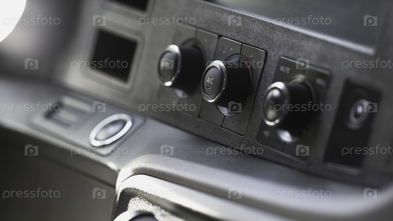 Замыкание температуры или кондиционера воздуха и регуляторов громкости на приборной панели нового транспортного средства, концепция транспорта