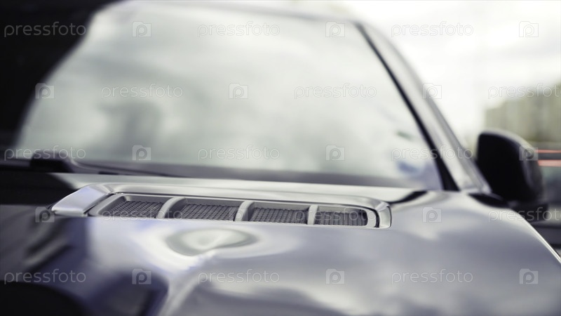 Подробности экстерьера автомобиля. Сток. Воздух в капоте. Впускные отверстия на капоте машины