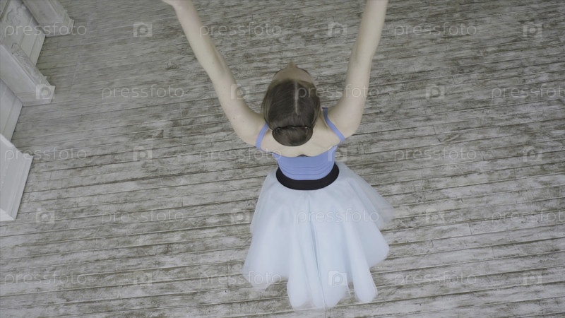 Красивая девушка-танцовщица исполняет элементы классического балета в дизайне лофта. Женские танцоры. Закройте ноги балерины, пока она практикует местами упражнения, медленное движение. Балетные туфли. Детальный снимок ног балерины. Близкие ноги ба