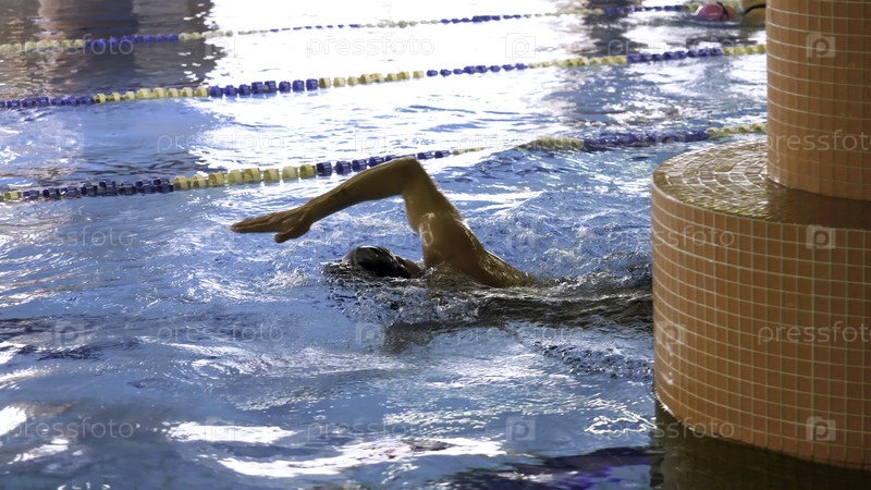 Спортсмены, пловцы тренируются на треках в бассейне, концепция здорового образа жизни