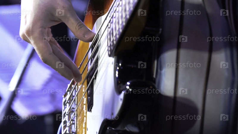 Он играет на гитаре.Гитарист.Человеческая рука и шестиструнная электрогитара.Закрывая гитару с помощью гитары