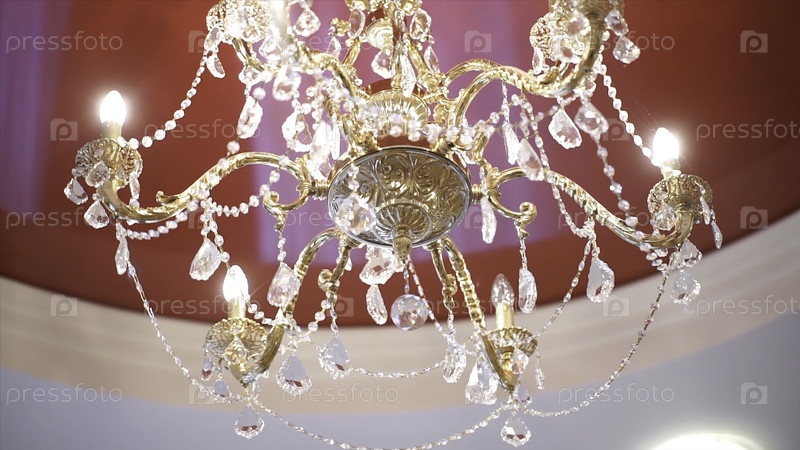 Красивая кристаллическая люстра в окружающем свете