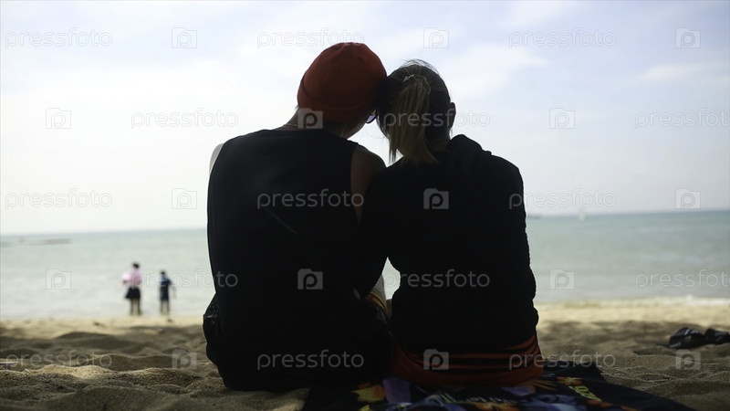 Видео: Счастливая любящая пара на скале с видом на тропическое красивое кристально чистое море на тропическом острове