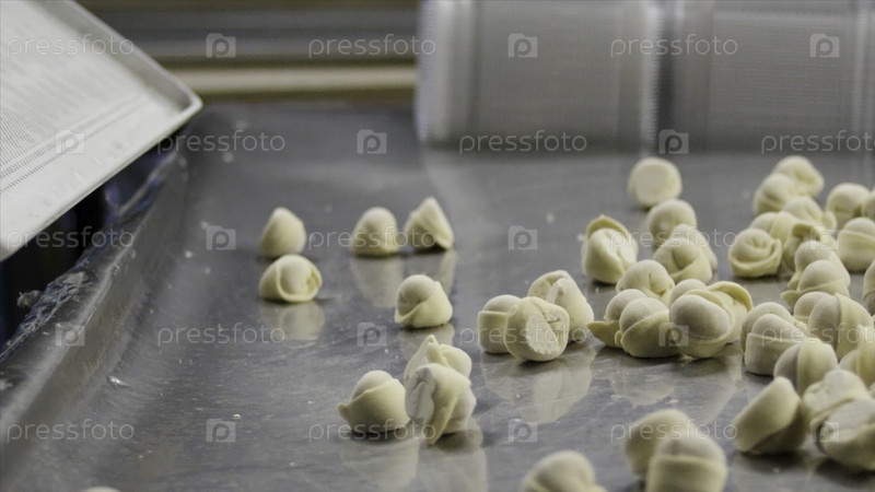 Только что законченные пельмени летают с подноса к столу. Летающие пельмени в замедленном режиме. Кипящие пельмени в замедленном режиме. Мясные пельмени выбрасываются на поднос, который находится в контейнере