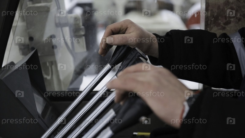 Оператор крана. рабочий с Лорри Краном во главе. гидравлическое управление старым краном