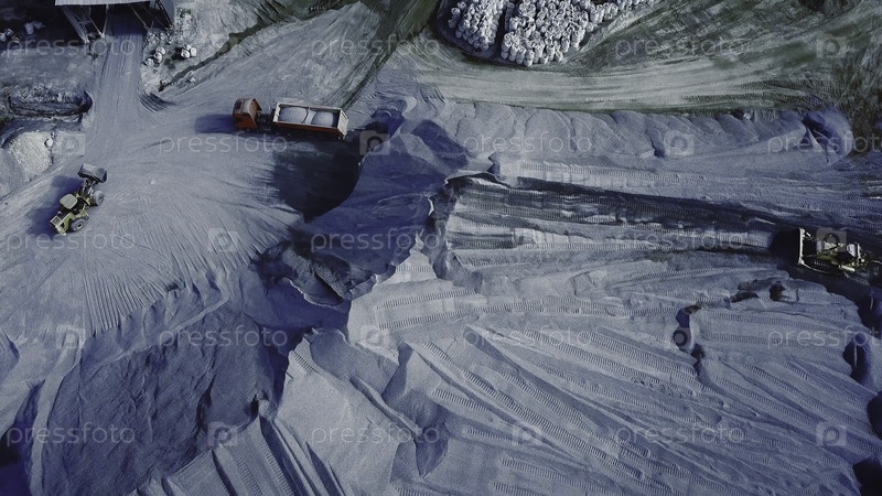Аэрофотосъемка большого карьера с экскаваторами и грузовиками на работе, тяжелой промышленностью и горнодобывающими концепциями.Полет над карьером, профессиональное оборудование и снаряжение