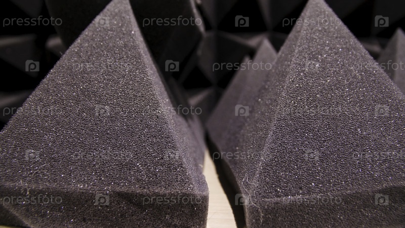 Закройте звукопоглощающую губку в музыкальной студии. звукоизоляционная пленка из полиуретановой пены. студия аудиозащищенный от пена рисунок текстуры. селективный фокус