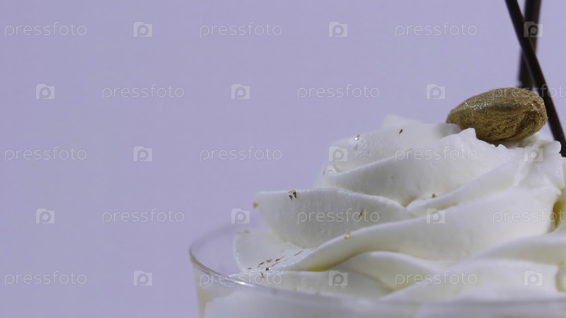 Ванильное мороженое в чашке на заднем плане