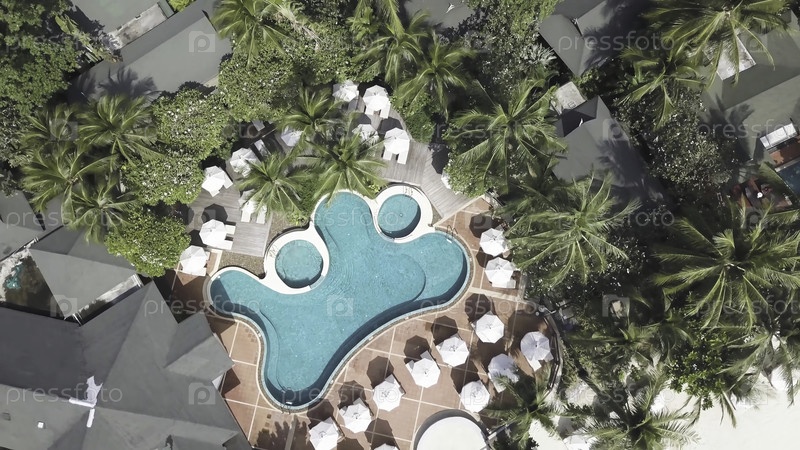 Бассейны в отеле на тропиках днем. видео. симпатичный бассейн в отеле. бассейн роскошного отеля. вид сверху от гостиничного бассейна