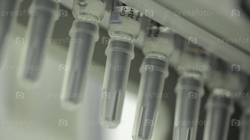 Фармацевтика.Фармацевтический работник управляет упаковочной машиной для таблеток. Производство шприцов. Шприц фармацевтическая промышленность. Линейный конвейер-машина для упаковки стеклянных бутылок ампул в коробках на фабрике