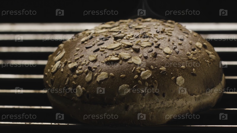 Закрытие горячей булочки Burger's на гриле. Резервное видео. Вкусный жареный хлеб. Грилл Бун для вкусного бургера. Круглый кусок хлеба, чтобы жарить на огне