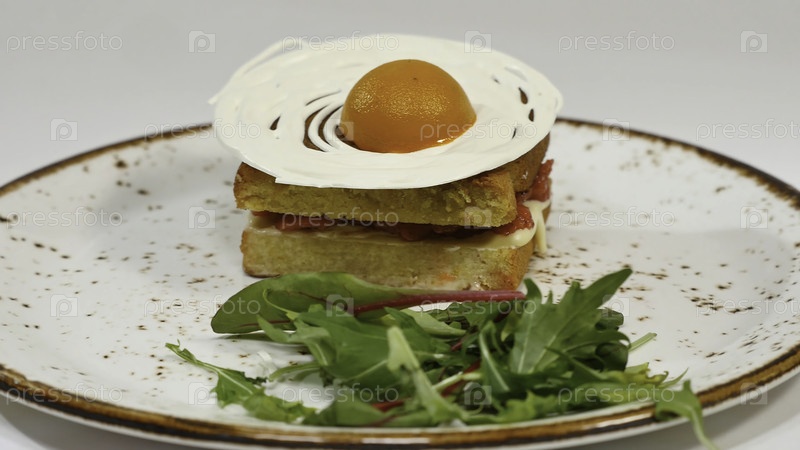Губка со клубникой, вареной конфетой и взбитым сливком с вырезанным куском