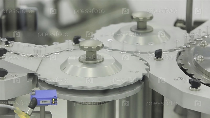 Машины для наполнения и герметизации ампулсов в фармацевтической промышленности Фармацевтика.Фармацевтический работник работает с упаковочной машиной для таблеток