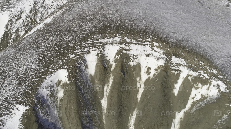 Красочный пейзаж заснеженных гор. Стрельба. Вид на холмистый ландшафт зимой