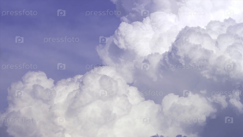 Голубое небо с облаками временного лапса. Большое белое облако в голубом небе. Большое и пушистое кумулярное облако в синем небе. Край большого белого облака. Панорама. Пейзаж синего неба, движущийся во времени