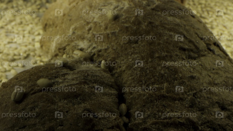 Дома делали хлеб из зерна, семян и злаков. Резервные кадры. Закройте на столе вкусный кусок свежевыпеченного хлеба, концепция еды