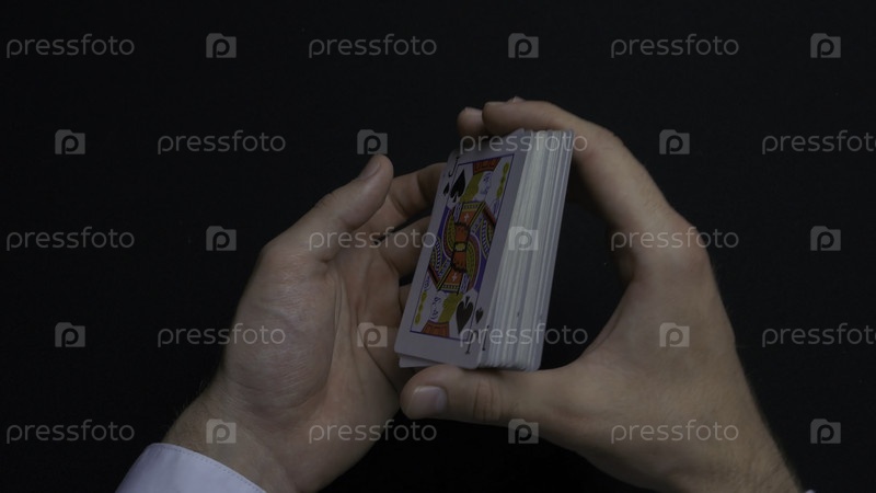 Играть в покер - это перемешивать карты. Руки мужчины смешивают карты. Закрывайте его. Руки мужчины смешивают игровые карточки. руки дилера смешивают карты во время игры в покер