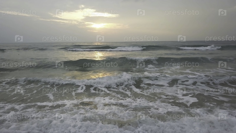 Закат Сумерки Душ Beach Wave Sun. Невероятно красивый закат на пляже в Таиланде. Солнце, небо, море, волны и песок. Праздник у моря