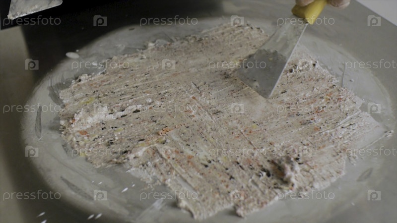 Сделайте натуральное фруктовое мороженое в тайском стиле.Клип.Сделать роллы мороженого с плодами страсти на холодной тарелке.Сделать роллы мороженого на холодной тарелке.Закройте ее.Лодко изготавливается в тайском стиле.Экзотический десерт-мороз ручной ра