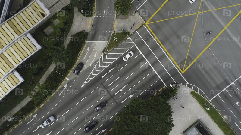 Большой перекресток в центре крупного города, вид с высоты