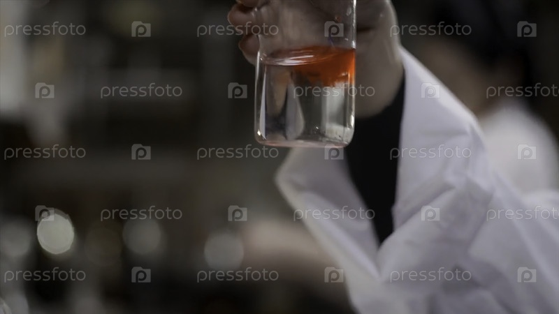 Молодой ученый работает в современной биологической лаборатории. Исследователь в лабораторном пальто осматривает оборудование для эксперимента. Микроэлектроника. Наука, концепция научной лаборатории