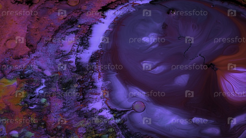 Искусство психоделической жидкости. Резервные кадры. Жидкие рисунки краски с пузырями размываются и создается новый уникальный узор. Ярко окрашенная чернила в потоке создает абстрактные формы на поверхности