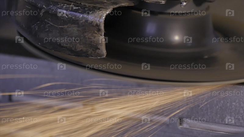 Ремесленник пил металл с помощью дисковой мельницы в мастерской. Металлическая шлифовка летящими искрами. Молот электровола на стальной конструкции на заводе низкоскоростного затвора. Металлическая шлифовка оранжевыми летающими искрами